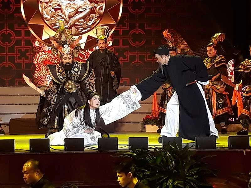 Bên cạnh Thành Lộc, Trinh Trinh cũng tròn đầy cảm xúc cho vai Kim Liên lẫm liệt trước giặc, xả thân vì nước. Thêm sân khấu hoành tráng, lung linh, dàn nhạc sống sang trọng, đẳng cấp khiến trích đoạn Tiên Nga càng thêm chinh phục người xem.
