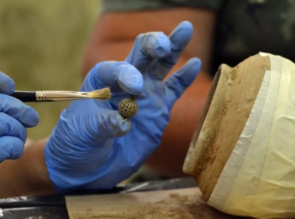 Một nhà khảo cổ đang làm sạch một đồng xu. Ảnh: National History Museum