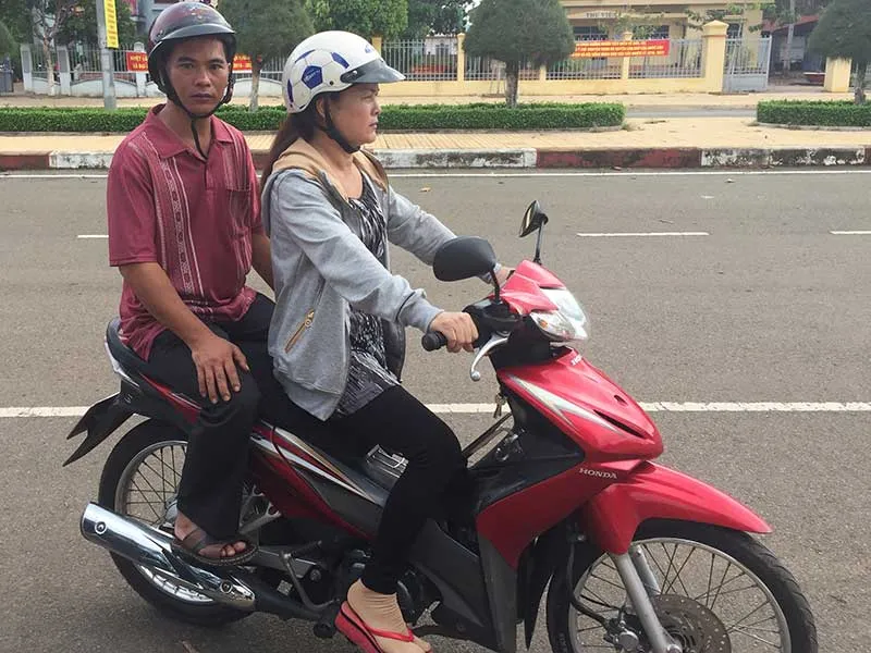 Mẹ anh Hoàng Trọng Nghĩa chở anh Nghĩa đến tòa trong hơn 10 năm qua. Ảnh: PHƯƠNG LOAN