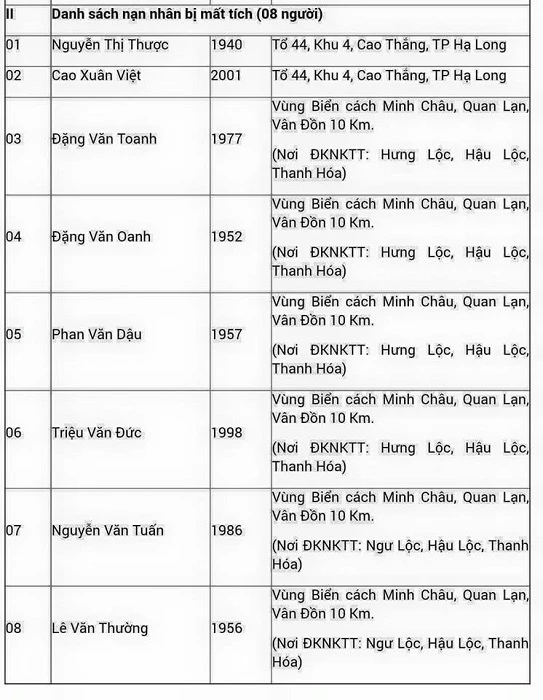 Danh sách các nạn nhân tử vong và mất tích được cập nhật đến ngày 27-7: