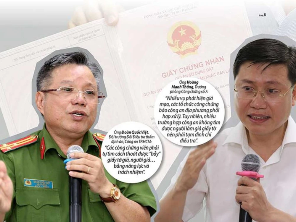Nạn giả người, giả giấy tờ công chứng ngày càng nhiều và tinh vi nhưng công an bị vướng trong xử lý vì luật chưa được giải thích rõ. Và vì vậy, các tổ chức công chức xem như đang "cô đơn" trong hành trình chống giấy tờ giả. Ảnh: HOÀNG GIANG