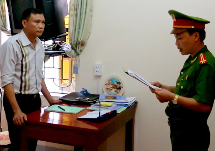 Công an đọc lệnh khởi tố đối với ông Hồ Xuân Tục và ông Nguyễn Hữu Dương.