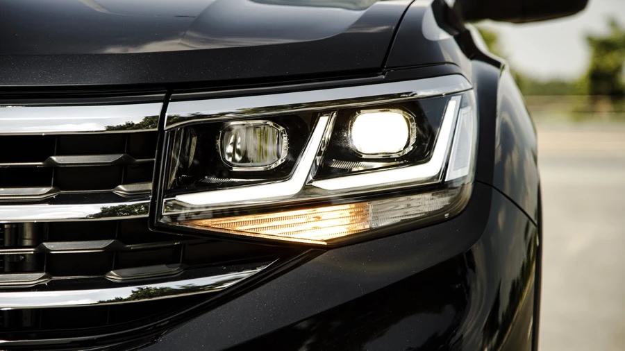 Phía đầu xe là hệ thống đèn chiếu sáng LED được cấu trúc lớn và vuông vức, đi cùng với đèn ban ngày có chức năng tự động bật tắt và điều chỉnh góc chiếu hỗ trợ khi thời tiết xấu. Kết hợp với hệ thống đèn hậu LED và bộ mâm 20 inch lớn tạo ra một dấu ấn độc đáo mang tính biểu tượng cho riêng Volkswagen Teramont. Khả năng off-road của Teramont còn được nâng cấp nhờ khoảng sáng gầm xe 235 mm, đi cùng góc tiếp cận/ góc thoát độ là 20.4/ 22.3 độ. Gương chiếu hậu chỉnh điện, tự sấy, tự động điều chỉnh khi lùi xe.