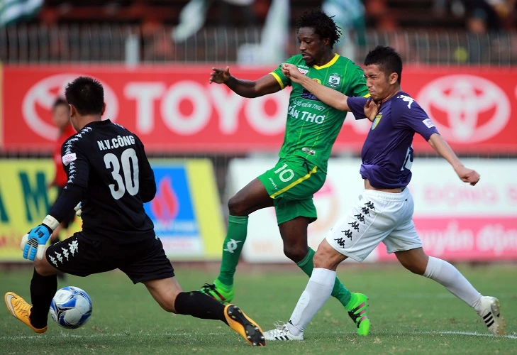 Khán giả đã không phải chờ lâu khi chỉ phút thứ 6, Oseni đánh đầu khiến thủ môn Văn Công vào lưới nhặt bóng từ đường tạt bóng của Patiyo. Một lần nữa sự hiệu quả của bộ đôi “sát thủ” này cho thấy số tiền bỏ ra để mang cặp đội này về là hoàn toàn xứng đáng.