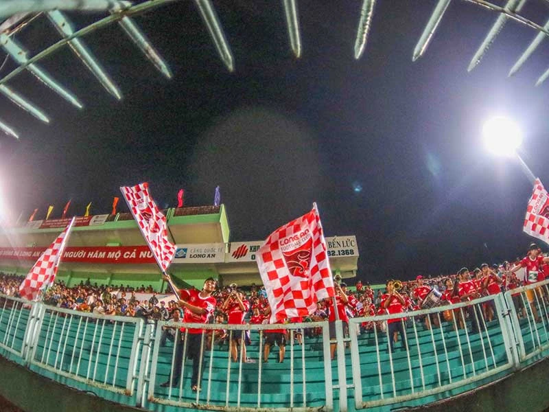 Cổ động viên Long An vẫn trung thành với đội bóng nhà sau sự cố sân Thống Nhất đến nay vẫn chưa có điểm. Ảnh: PHẠM HUY
