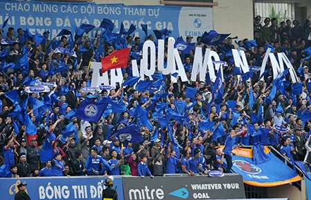 Cổ động viên Than Quảng Ninh. Ảnh: XUÂN HUY