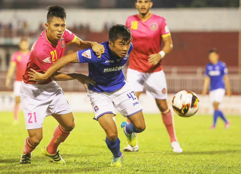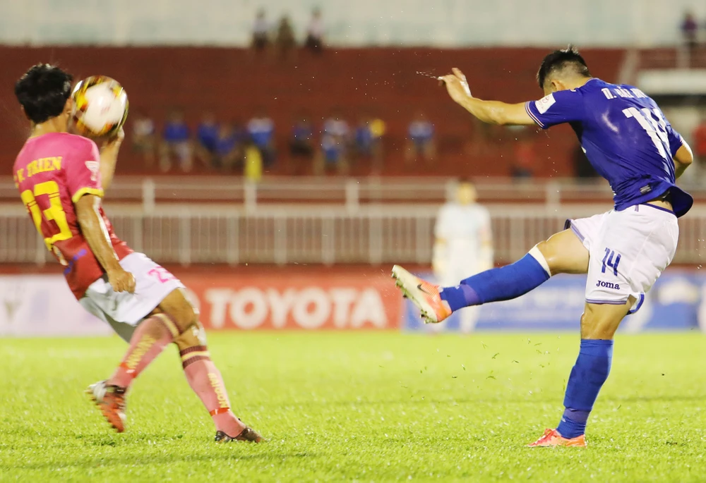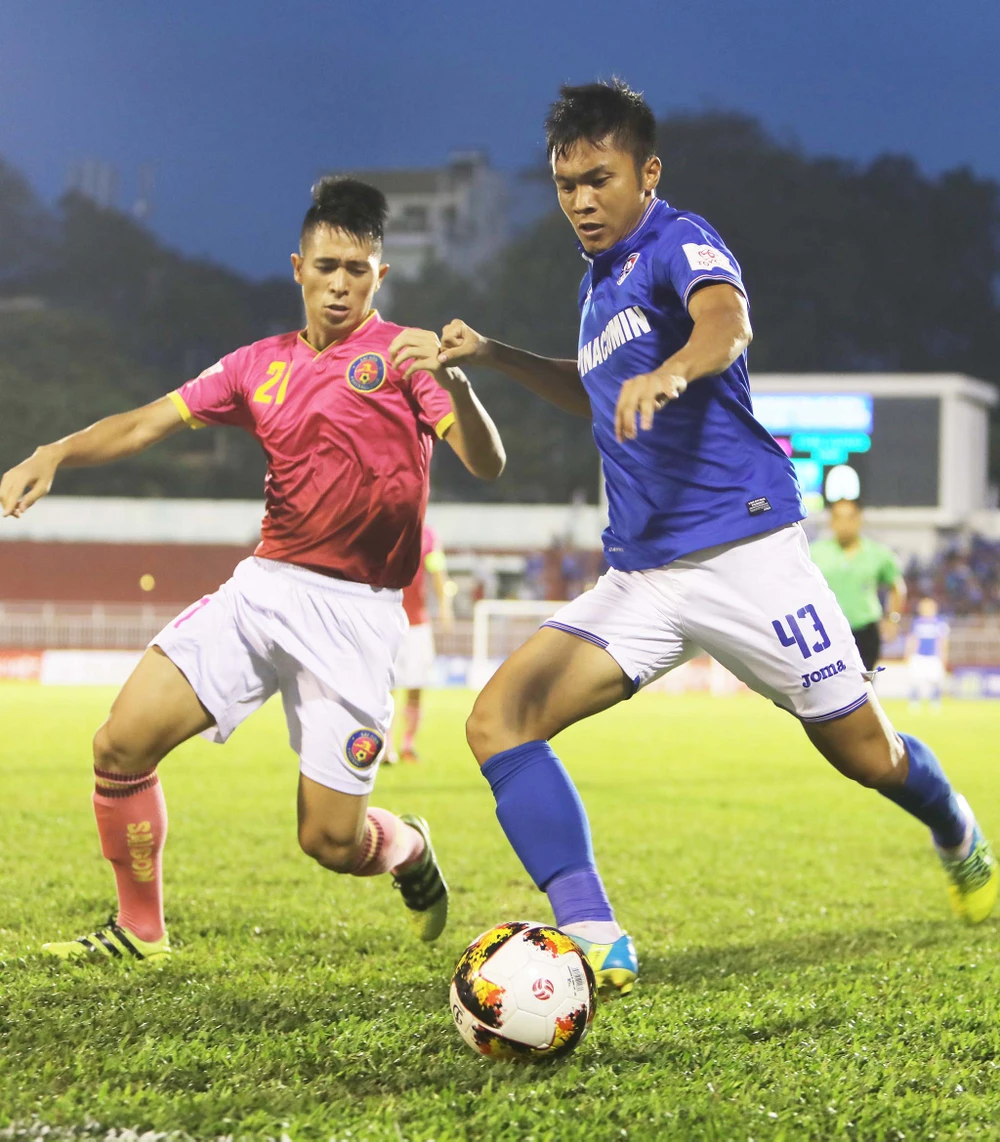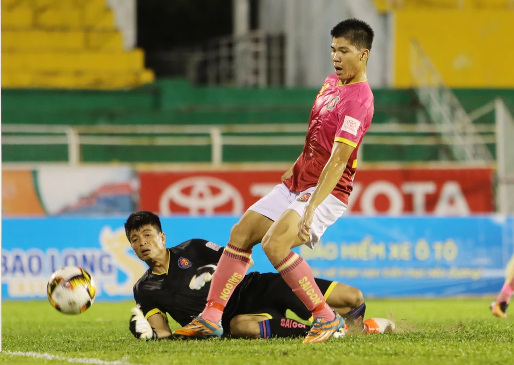 Nguyên Sa trước sự truy cản của phòng ngự Sài Gòn FC