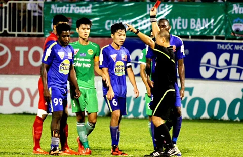 Chiếc thẻ đỏ của Moussa và nỗi buồn của HA Gia Lai ở trận hòa mà như thua. Ảnh: XUÂN HUY
