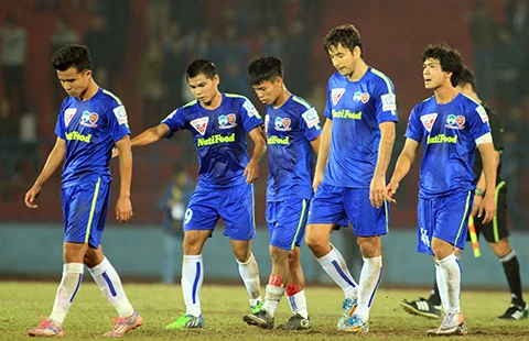 | Thanh Hóa ráo riết bám đuổi B. Bình Dương Chủ sân Thanh Hóa bất ngờ bị khách Than Quảng Ninh chọc thủng lưới trước ở phút 15 do công của Maxwel nhưng đến phút 33, Hoàng Đình Tùng gỡ hòa 1-1, đánh dấu một cuộc lội ngược dòng đẹp mắt. Chỉ năm phút sau, Quốc Phương xuất thần tung cú sút xa ngoài 30 m giúp Thanh Hóa dẫn lại 2-1. Phút cuối, Omar ấn định 3-1 giúp chủ nhà bỏ túi 3 điểm để nuôi hy vọng soán ngôi đầu bảng của B. Bình Dương khi chỉ còn kém 1 điểm. Cuộc cạnh tranh vô địch V-League gần như là đua song mã giữa hai đội B. Bình Dương và Thanh Hóa có tham vọng lẫn nội lực cao hơn hẳn các đối thủ khác. + Các trận đấu còn lại: B. Bình Dương - ĐT Long An 3-1, Sanna Khánh Hòa - Đồng Tháp 2-1, QNK Quảng Nam - SHB Đà Nẵng 2-1, Hà Nội T&T - SL Nghệ An 1-0. TT + Bảng xếp hạng:1. B. Bình Dương (41 điểm); 2. Thanh Hóa (40 điểm); 3. Hải Phòng (36 điểm); 4. Hà Nội T&T (33 điểm); 5. Sanna Khánh Hòa (33 điểm); 6. ĐT Long An (31 điểm); 7. Than Quảng Ninh (30 điểm); 8. SL Nghệ An (29 điểm); 9. SHB Đà Nẵng (25 điểm); 10. QNK Quảng Nam (23 điểm); 11. Đồng Tháp (20 điểm); 12. Cần Thơ (17 điểm); 13. Đồng Nai (14 điểm); 14. HA Gia Lai (14 điểm). |