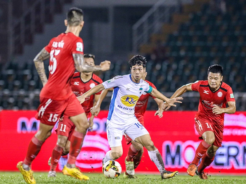 Công Phượng lập cú đúp vẫn không thể giúp HA Gia Lai thoát khỏi trận thua nặng TP.HCM. Ảnh: H.PHẠM