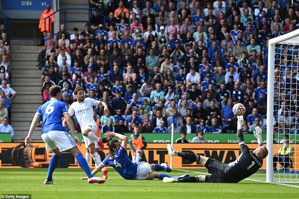 Ngay sau đó ở phút 21, Man. City tiếp tục khiến khung thành Leicester City chao đảo với pha phối hợp đá phạt nhanh của Gundogan khi có đường chuyền ngang cho Grealish dứt điểm. Tuy nhiên cú sút của số 10 bên phía “Man Xanh” lại đưa bóng đi vọt xà ngang.