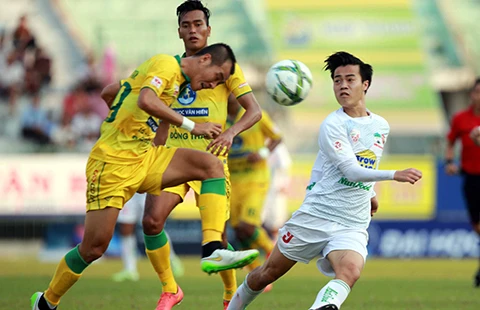 Hoàng Anh Gia Lai (phải) có trận đấu khó và nhận trận thua đậm nhất vòng 5. Ảnh: XUÂN HUY