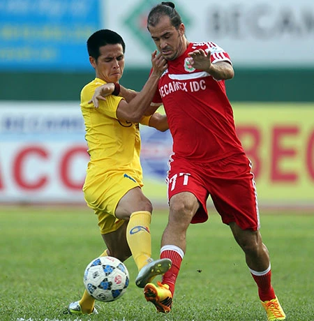 Lần lượt những Hoàng Thiên, Felix, Timothy… có cơ hội xâm nhập khu 16,5 m nhưng những pha dứt điểm lại không thể thành bàn khi trung vệ kỳ cựu Vũ Như Thành đã chơi lăn xả như thời hoàng kim. Như Thành đã điều động cả hàng thủ HV An Giang chơi thật kín kẽ làm nản lòng các chân sút chủ nhà.
