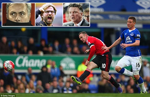 Bàn thắng chấm dứt chuỗi tám năm Rooney tịt ngòi ở Goodison Park nhưng đấy lại là vòng đấu mà ba HLV Mourinho, Klopp, Van Gaal được chú ý. Ảnh: GETTY IMAGES