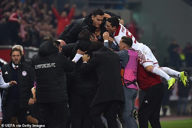 Olympiacos vui mừng sau khi lách qua khe cửa hẹp đi tiếp.