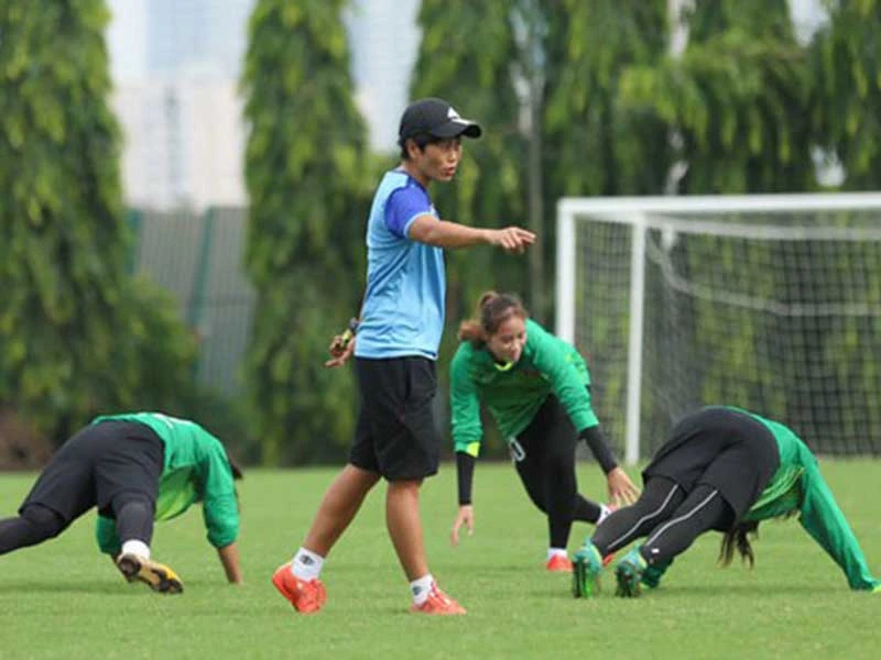 HLV Mai Lan và các học trò trước cuộc chơi lớn tại Chonburi, Thái Lan. Ảnh: CTV