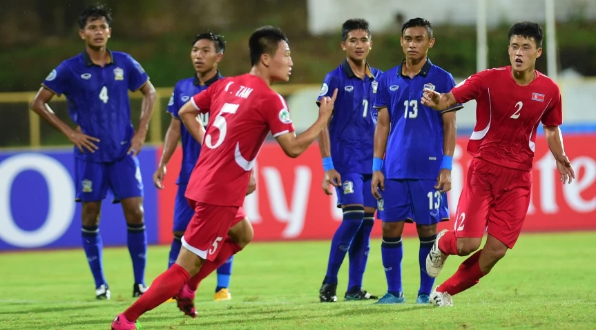 U-16 CHDCND Triều Tiên (đỏ) quá mạnh so với U-16 Thái Lan (xanh)