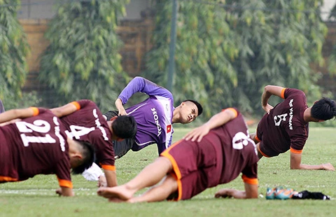 Buổi tập khởi động sau những ngày hội quân của các cầu thủ U-23. Ảnh: XUÂN HUY