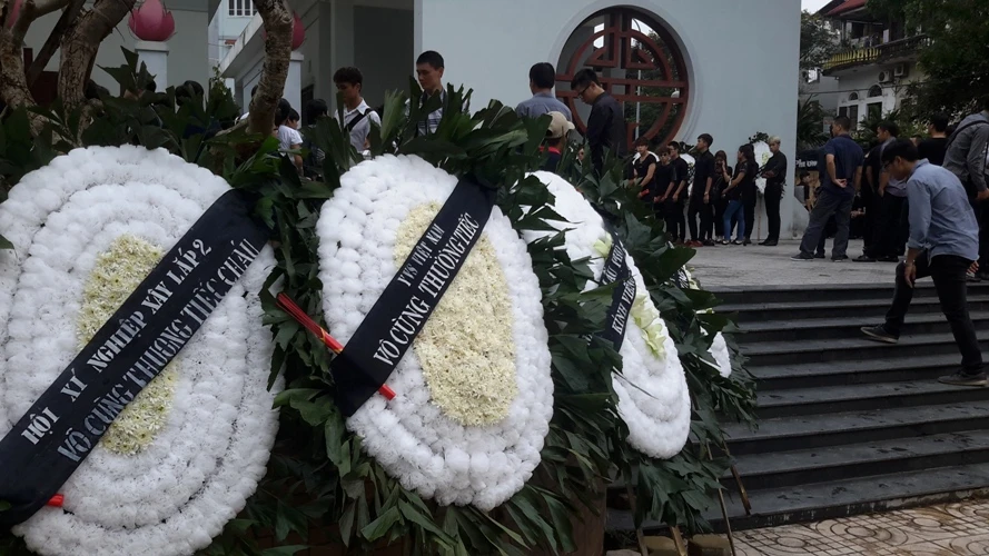Những vòng hoa trắng bày tỏ lòng tiếc thương của người thân, bạn bè dành cho anh