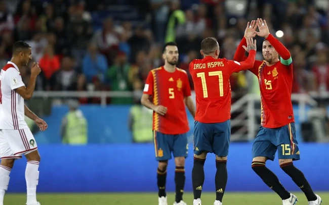 Việc nằm chung bảng đấu với Bồ Đào Nha, Iran, Morocco, Tây Ban Nha vẫn giành ngôi nhất bảng nhưng màn thể hiện đó là vẫn chưa thuyết phục. Ngoại trừ nhà vô địch Châu Âu Bồ Đào Nha được xem là đối thủ xứng tầm, hai đối thủ Iran và Morocco không quá mạnh, Tây Ban Nha lại phải nhờ vào sự tỏa sáng đúng lúc của Iago Aspas trong trận hòa nghẹt thở với Morocco mới giành tấm vé đi tiếp.