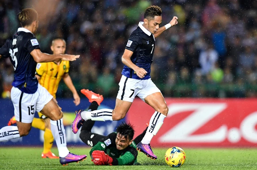 Campuchia (áo xanh) chính thức bước vào AFF Cup 2016