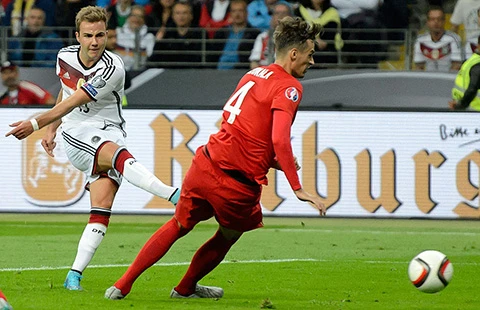 Đội hình Đức tuy vắng tiền đạo Reus chấn thương song vẫn còn nhiều mũi nhọn lợi hại, còn được bổ sung hậu vệ trẻ Can nên lối chơi vẫn tỏ ra sắc bén, hiệu quả. Sau trận lượt đi thua Ba Lan 0-2, tuyển Đức thể hiện đẳng cấp với pha đánh đầu mở điểm do cựu binh Mueller ghi ngay phút 12. Ấn tượng hơn là ngôi sao trẻ Goetze lập cú đúp và một lần đánh đầu cứu nguy cho thủ môn Neuer.