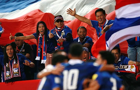 Cổ động viên Thái Lan mừng chiến thắng của đội nhà. Ảnh: CTV