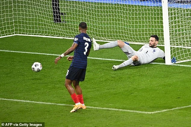Bàn phản lưới của Kimpembe , khiến Pháp chia điểmngay chính trên sân nhà với tỷ số 1-1 trước Ukraine. Ảnh: Getty Images.