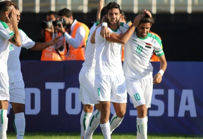 Các cầu thủ Iraq mừng chiến thắng