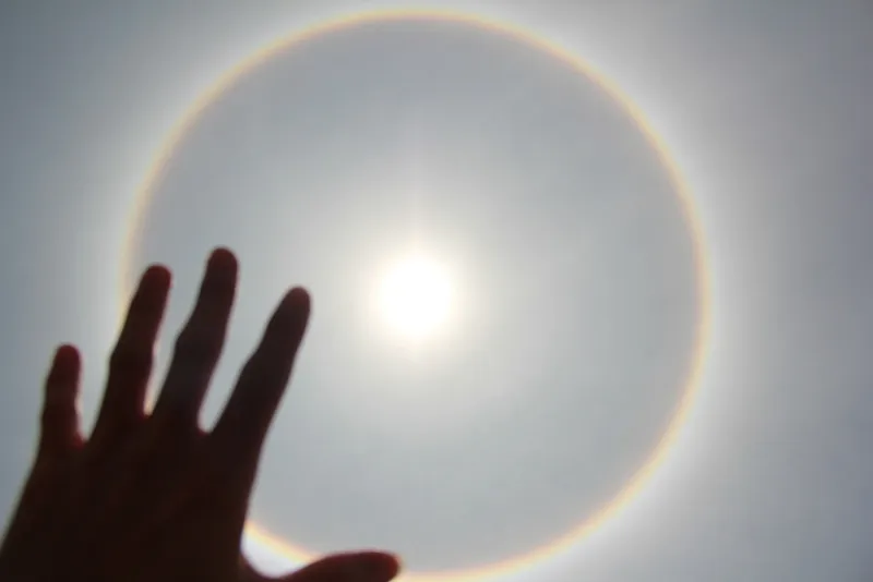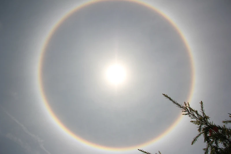 Theo anh Đặng Vũ Tuấn Sơn, Chủ tịch Hội Thiên văn học trẻ Việt Nam, thì đây là hiện tượng quầng 22 độ. Hiện tượng quang học này xảy ra trong khí quyển Trái đất ở khu vực lân cận đĩa sáng Mặt trời hoặc Mặt trăng khi thời tiết rất khô, ít hơi nước, trên tầng cao của khí quyển chỉ có mật độ thấp các hạt băng. Hiện tượng này thường được quan sát phổ biến ở Mặt trăng và ít gặp hơn ở Mặt trời.