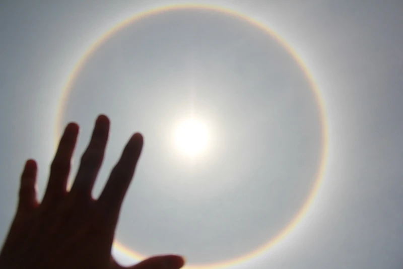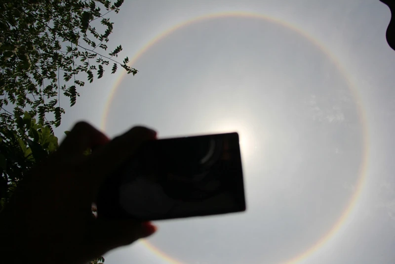Vào trưa 8-5, nhiều người dân tại Thừa Thiên-Huế hào hứng khi nhìn thấy mặt trời tại thời điểm này có một vòng tròn ánh sáng xung quanh không giống như bình thường.
