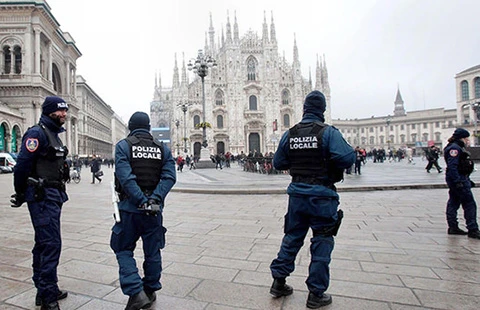 Tăng cường bảo vệ nhà thờ chính tòa ở Milan (Ý). Ảnh: EPA