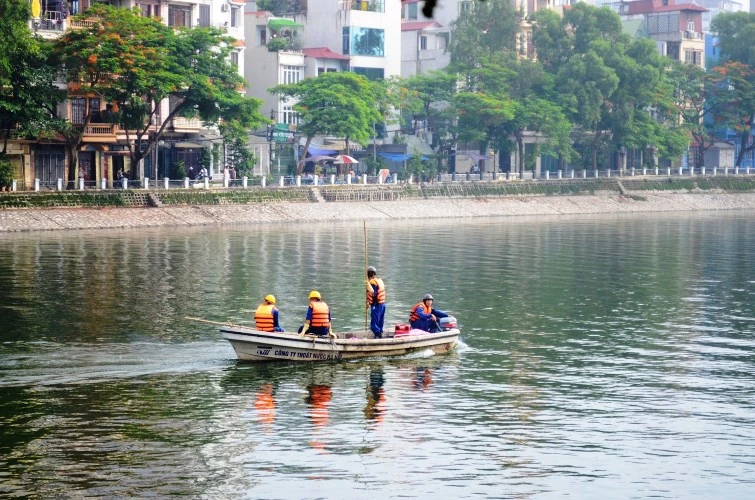 Sáng nay 9-6, ông Võ Nguyên Phong, Phó Giám đốc Sở Xây dựng TPHà Nội, cho biết sau khi nắm được tình hình cá chết ở hồ Hoàng Cầu (quận Đống Đa) vào ngày 8-6, theo chỉ đạo của chủ tịch UBND TP Hà Nội, Sở Xây dựng đã chủ trì huy động hàng trăm công nhân của hai công ty thuộc sở để xử lý môi trường, làm sạch hồ suốt đêm qua.