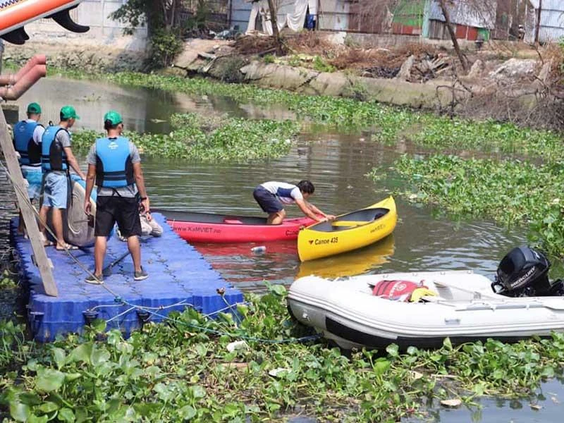 Nhóm tình nguyện viên với hoạt động vớt rác trên kênh rạch . Ảnh: CTV