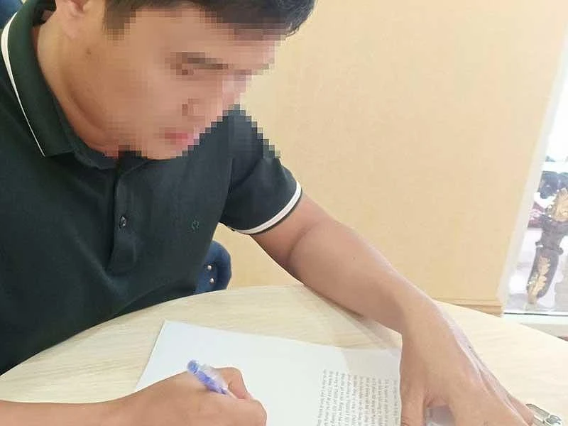 Ông Trần Thanh Lâm đang ký cam kết hàng loạt vấn đề với Công ty TPH để cho Công ty NĐH được phân phối độc quyền 100 nền đất. Ảnh: PV