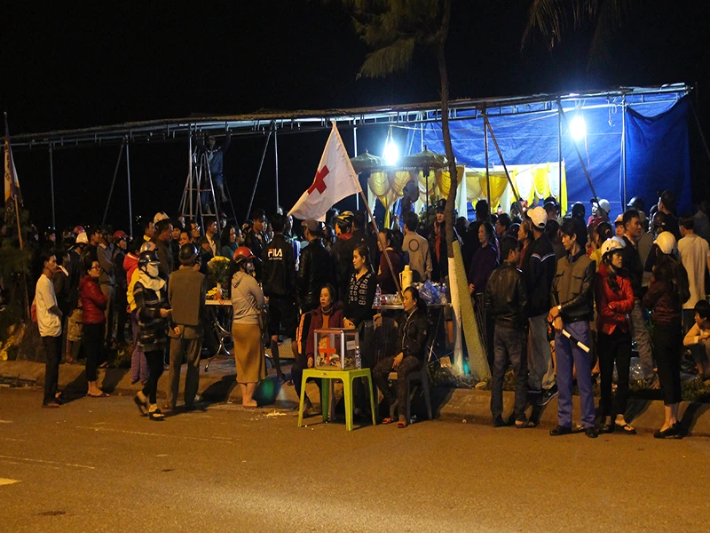 Khuya 24-1, người nhà nạn nhân anh Nguyễn Đình Hoành (trú quận Thanh Khê, TP Đà Nẵng) vẫn tập trung tại bờ biển trên đường Nguyễn Tất Thành (quận Thanh Khê, TP Đà Nẵng) để chờ tiếp nhận thi thể, tổ chức mai táng cho anh.