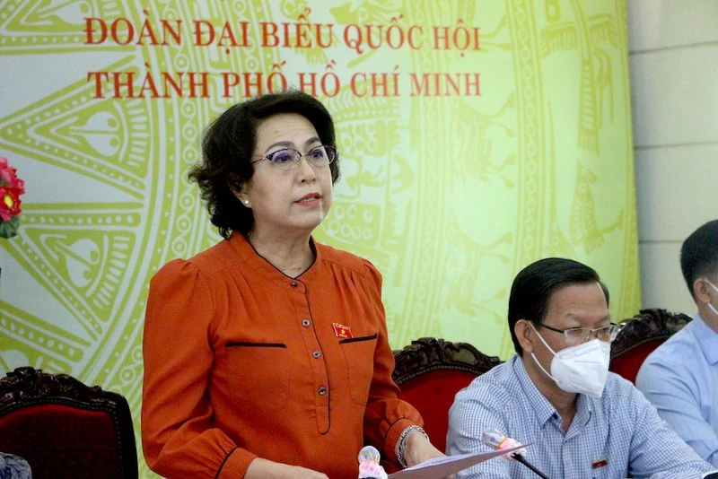 ĐBQH Tô Thị Bích Châu phát biểu từ đầu cầu TP.HCM. Ảnh: LÊ THOA