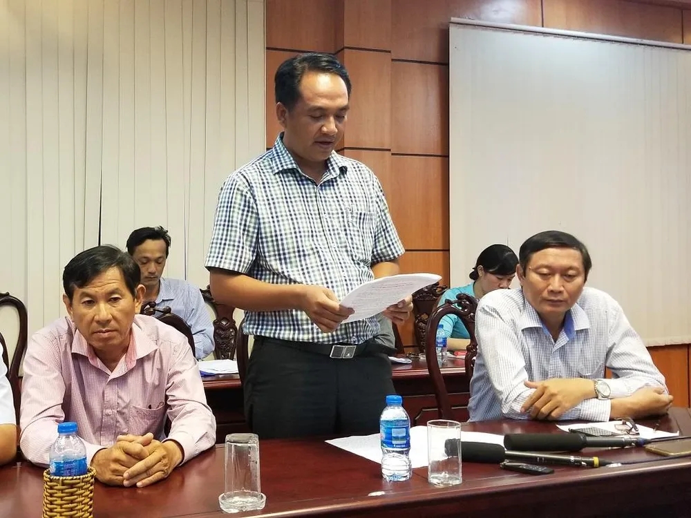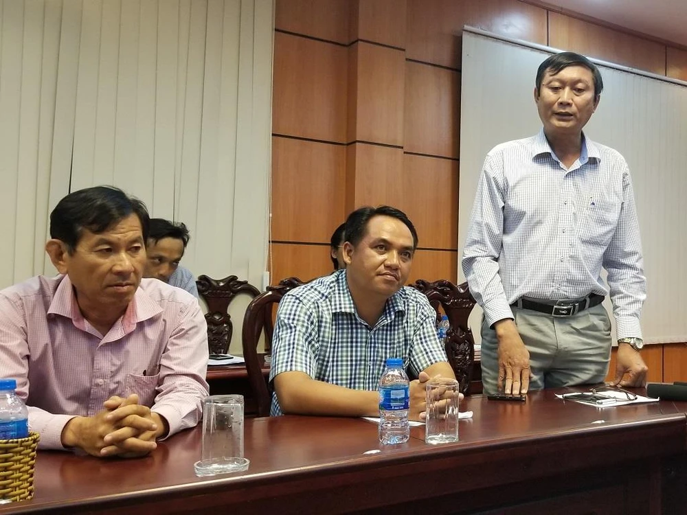 Quyền Giám đốc Sở Y tế Cà Mau Nguyễn Văn Dũng (đứng) không tin ở đâu ra có con số 300 xác thai nhi trong 7 năm qua. Ảnh: TRẦN VŨ.