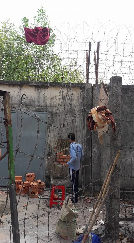 Sửa lại phần tường bị học viên đập vỡ. Bên cạnh đó vẫn còn những tấm chăn bị học viên vứt lại khi bỏ trốn
