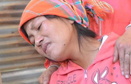 Chị Vàng Thị Mỵ với nỗi đau mất con. Ảnh: DA