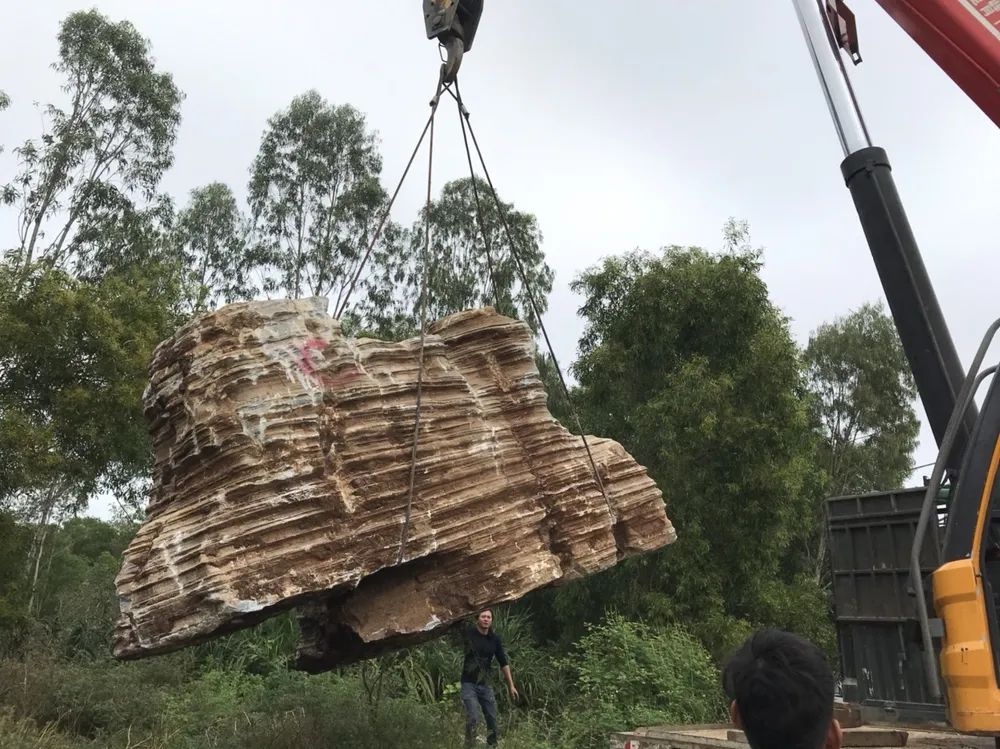 Anh Phương thuê đơn vị cẩu đá xuống khu đất trống tạm gửi. Ảnh: AP