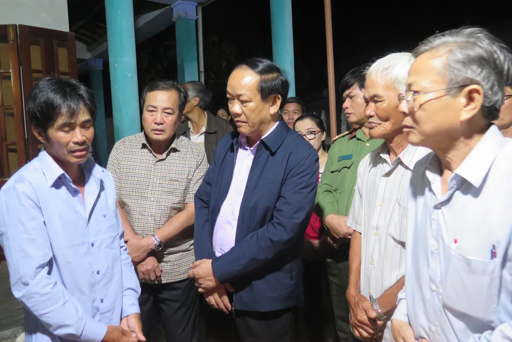 Ông Đinh Văn Thu (Chủ tịch Quảng Nam) và ông Huỳnh Khánh Toàn (Phó chủ tịch Quảng Nam) thăm hỏi gia đình các em gặp nạn. Ảnh: TN.