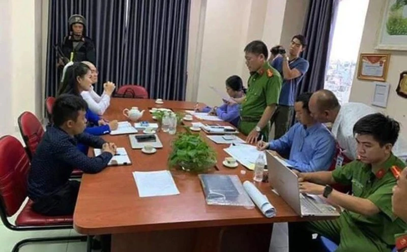 Công an thực hiện các biện pháp tố tụng tại trụ sở Công ty Alibaba ở phường Hiệp Bình Chánh, quận Thủ Đức. Ảnh: CM