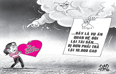 Sau đó, ông Donald gọi điện thoại vay 40 triệu đồng do không thể rút tiền quá hạn mức nên bà đã chuyển tiền qua ngân hàng cho ông. Đầu năm 2013, bà mới biết ông Donald đã lấy bà T. và mua đất xây nhà cho bà này. Từ đó, ông bị bà T. chi phối. Khi biết việc ông Donald từng cho tiền bà thì bà T. buộc ông không quan hệ với bà và ký vào giấy khởi kiện đòi tiền để bà T. làm ủy quyền đòi lại 10.000 CAD. Khi tòa thụ lý giải quyết, bà T. buộc ông Donald về nước để “tránh rắc rối”.