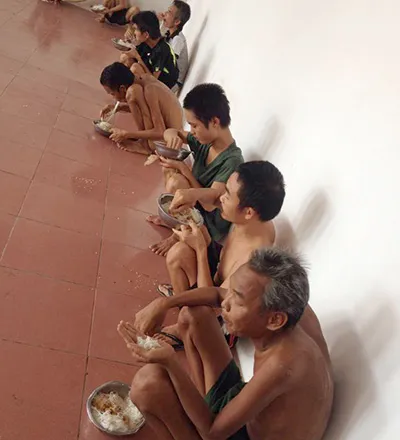 Nhưng một thời gian sau, tôi trở lại đây thì thấy có nhiều người gầy yếu. Tôi hỏi thì những người này cho biết do ăn không đủ. Tháng 8-2015, chúng tôi chung tay “giải cứu” khoai lang tím Vĩnh Long (do nông dân trồng khoai của nơi đây bị ép giá nên lỗ nặng). Tôi mua khoai lang tím Vĩnh Long đưa lên trung tâm cho người tâm thần và người vô gia cư đúng ngay lúc họ đang dùng cơm. Tôi sốc và bất ngờ khi tận mắt chứng kiến bệnh nhân tâm thần phải ăn bốc trong bữa cơm quá đạm bạc với chỉ vài ba miếng thịt mỡ và ít canh rau, họ phải ở lỗ (không mặc quần áo).