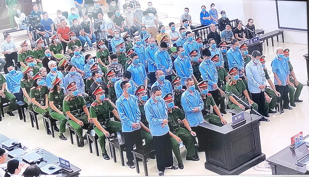 Tòan cảnh phiên toà sơ thẩm. Ảnh chụp qua màn hình