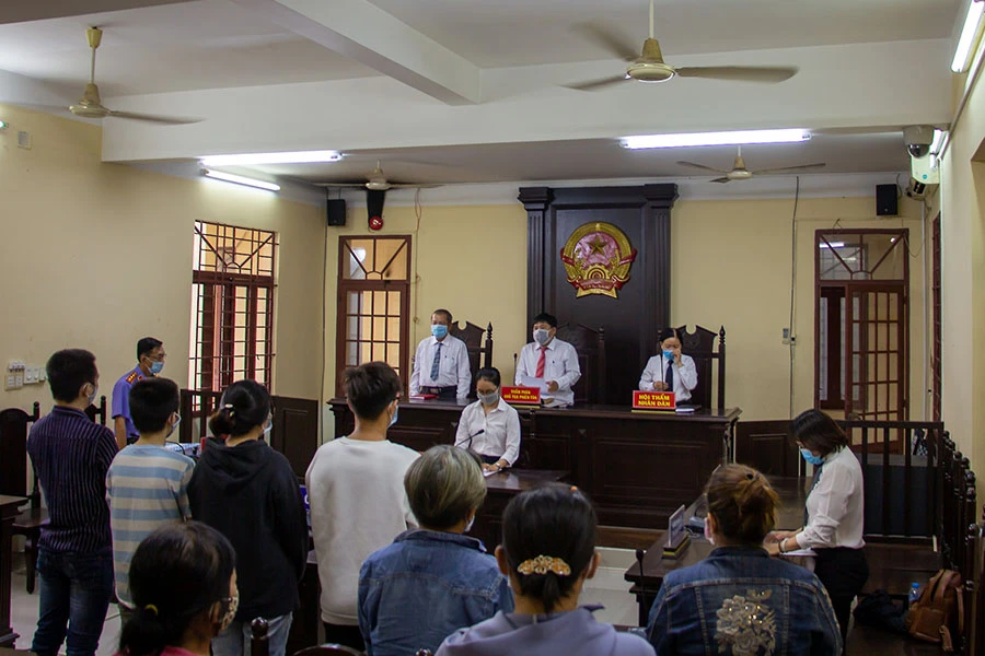 Các bị cáo tại phiên tòa sơ thẩm. Ảnh: PL