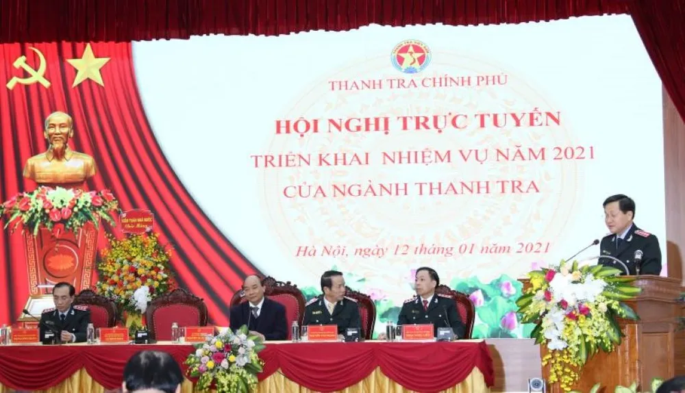 Chiều 12-1, Thanh tra Chính phủ tổ chức Hội nghị trực tuyến triển khai nhiệm vụ 2021, Thủ tướng Nguyễn Xuân Phúc dự và chỉ đạo hội nghị.
