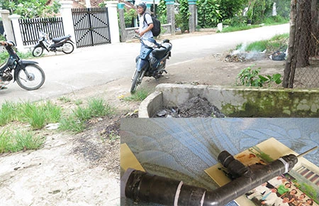 Hiện trường nơi Bảo, Phương, Hữu bị nạn. Một khẩu súng tự chế Công an xã Tân Thạnh Đông thu được của kẻ trộm chó. Ảnh: HT
