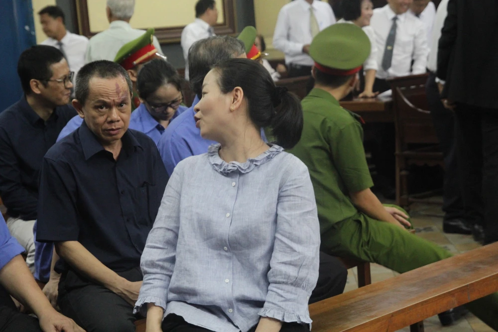 Các bị cáo tại phiên tòa chiều nay (16-5).